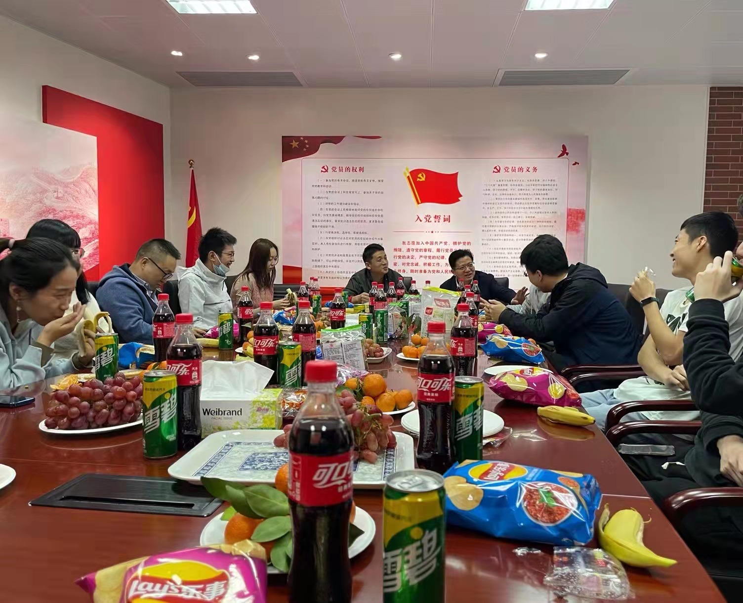 随后,公司师生共享美食,在其乐融融的氛围下共同分享自己家乡的过年习俗与有趣的经历。汕头的同学向大家介绍过年的花市,北方的博士大师兄为大家分享烧柏火的有趣经历;佛山的潘文亮老师介绍了祖庙等过年习俗,陕西的同学则给大家描述了舞狮打鼓的热闹场景。来自五湖四海的师生积极分享着曾经的春节记忆和经历过的趣味故事,让彼此都感受到浓浓的异地年味。孙小强副教授说:“虽然国家幅员辽阔,过年的习俗也因地域各不相同,但大家过年的心情是一样的”。茶话会在热闹的聊天与新春祝福声中结束。