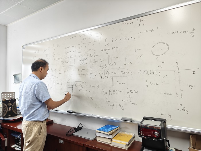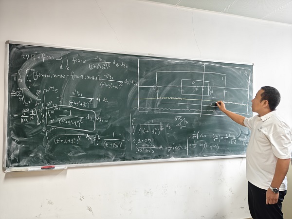 8月31日上午,广州校区南校园震寰堂,头发花白的朱熹平教授正在为数学强基班大三的本科生讲授《偏微分方程》课程,四块黑板写满了擦,擦完了又写满。不用麦克风,但即便站在走廊上,都能听到他声如洪钟的讲课声,讲到投入处,更是不自觉提高了分贝。