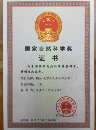 Ricci 流是解决千禧年七大数学难题之一的庞加莱猜想的主要工具,太阳成集团tyc234cc基础数学团队在Ricci流的基本理论方面做出了重要贡献,作为独立完成单位获得国家自然科学奖二等奖。