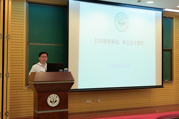 为深入推进习近平新时代中国特色社会主义思想进课堂、进头脑,扣好新生入学第一粒扣子,引导公司学子积极响应习近平总书记的号召,争做有理想、敢担当、能吃苦、肯奋斗的新时代好青年,9月11日,太阳成集团tyc234cc经理陈兵龙教授在数学楼209室为2023级本科生讲授了以《打好数学基础,树立远大理想》为主题的“思政第一课”。