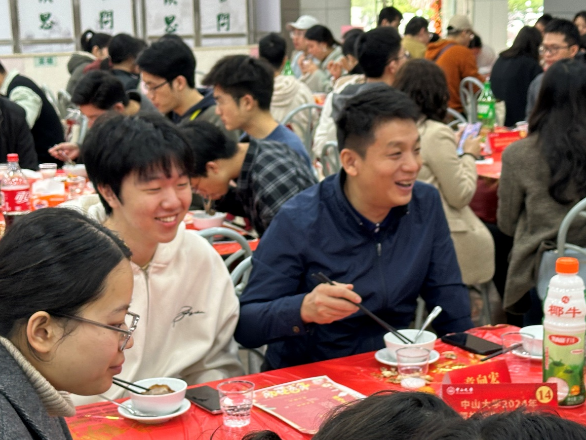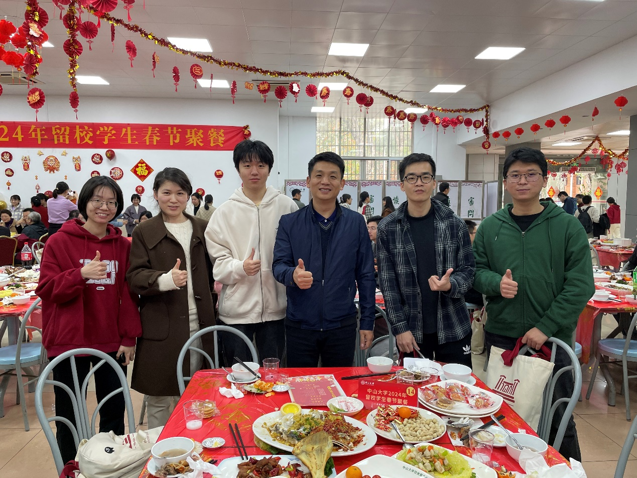 在活动中,章向宏老师与公司留校同学深入交流,亲切询问同学们家乡的春节习俗,了解他们的留校学习与生活。他向同学们介绍了聚餐活动中的传统广州粤菜,还分享了广州花市等传统的春节活动,让同学们感受到浓厚的广州年味。交谈中,老师和同学们相互送上了新春的祝福,章老师也转达了公司对同学们的关心和期望。他说,努力学习不松懈的同时,开心、充实的度过美好的老员工活也很重要,同学们应珍惜大学宝贵的时光,努力奋斗,为自己将来的成长打下坚实基础。在聚餐结束时,大家一起合影留念。