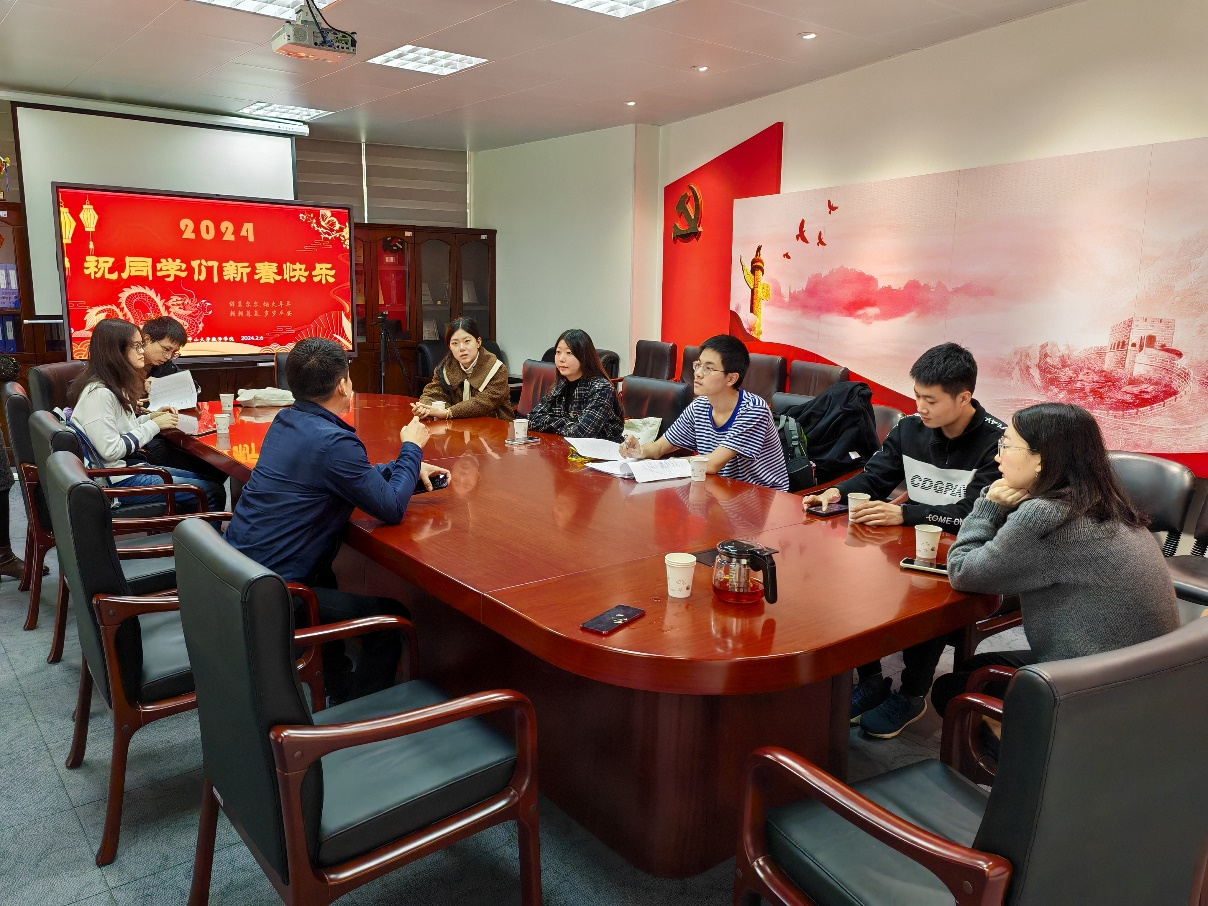 公司陈兵龙经理、阮映东书记也一直记挂留校过年的同学们特意准备了“年货大礼包”。聚餐结束后,在公司315会议室,留校员工前来领取大礼包并一起座谈。公司党委副书记章向宏老师、公司团委书记杨晓静老师、公司研究生秘书姚璐老师参加了座谈。老师们亲切询问同学们留校学习、生活安排,了解同学们留校期间的实际需求与遇到的问题,叮嘱同学们留校期间增强安全意识,互相联络,与家长老师保持沟通,度过一个平安、欢乐、充实的春节和寒假。