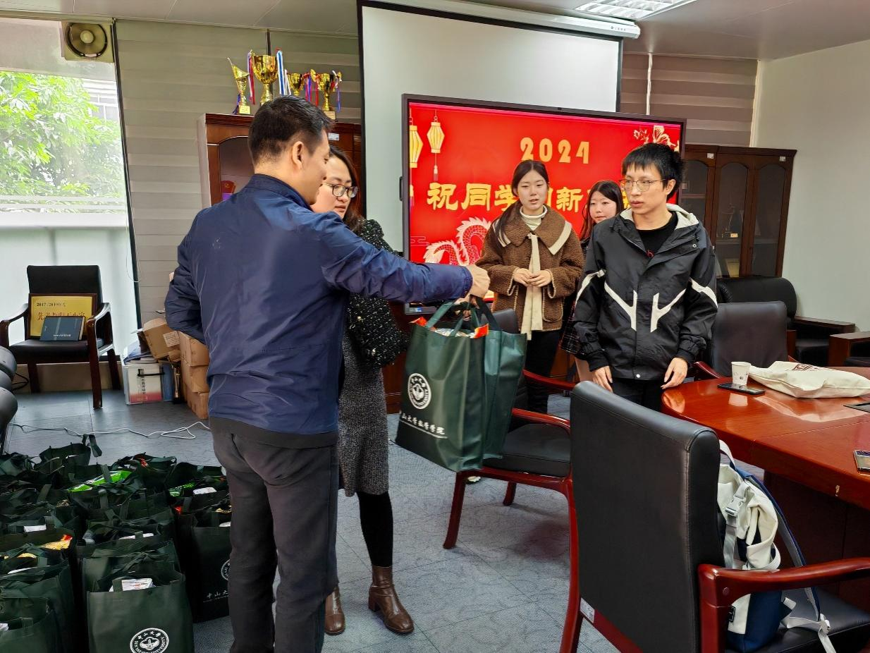 座谈会后,老师们给同学们分发新春慰问礼包,并送上新春祝福。