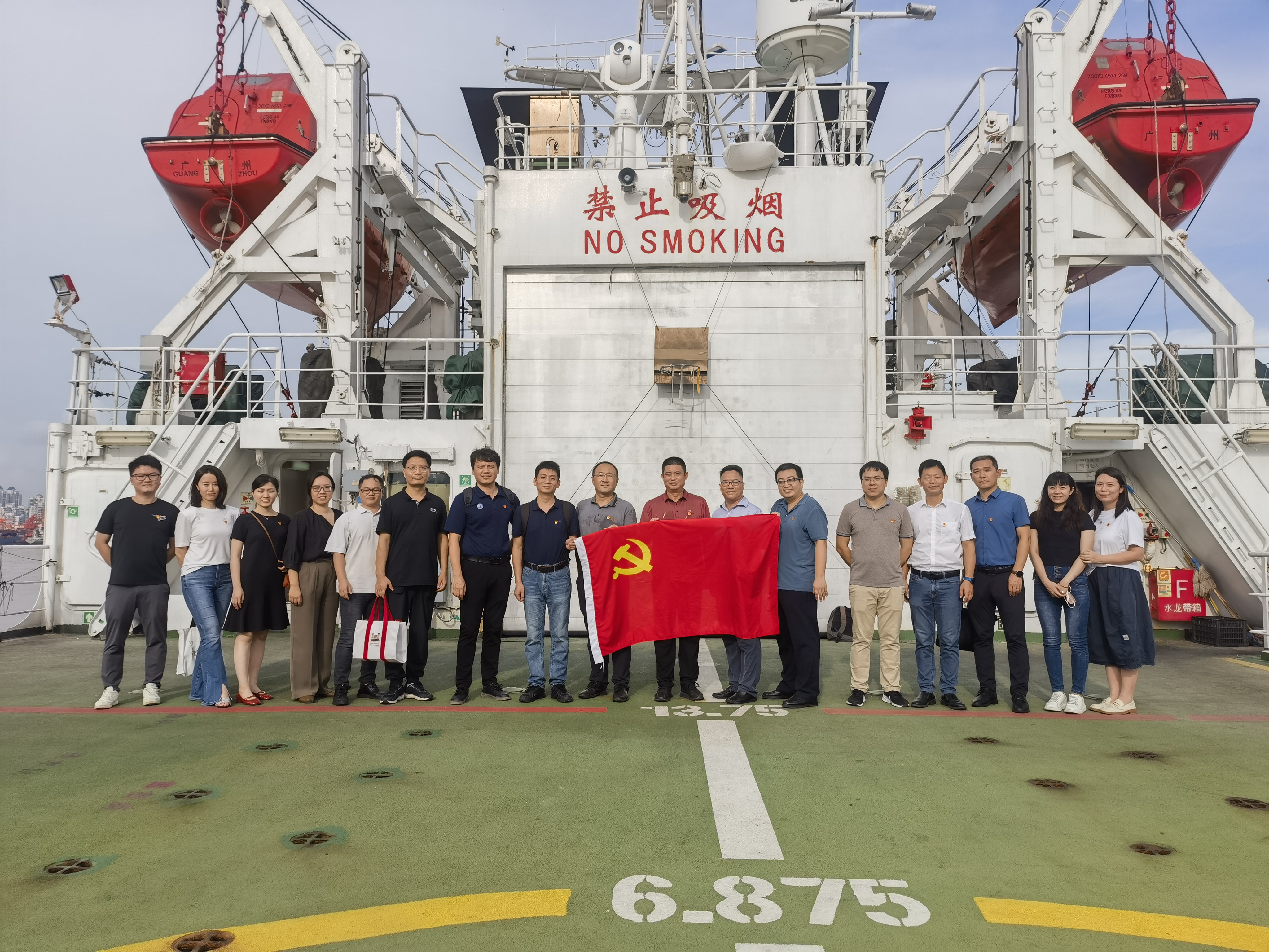辅导报告会后,海洋科学公司和太阳成集团tyc234cc领导班子成员前往广州洪圣沙基地,参观海洋科考船,与自然资源部南海局党员开展联合党建活动并进行了深入交流。