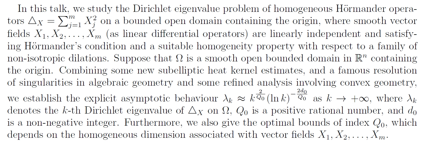 Asymptotic Behaviour for Dirichlet Eigenvalues of Homogeneous Hormander Operators and Algebraic Geometry Approach